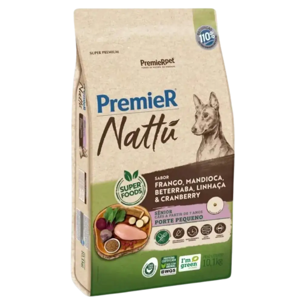 Ração Premier Nattu para Cães Adultos Raças Pequenas Sênior Sabor Mandioca quantidade
